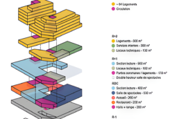 Construction mixte : logements, médiathèque, salle de spectacle et restaurant