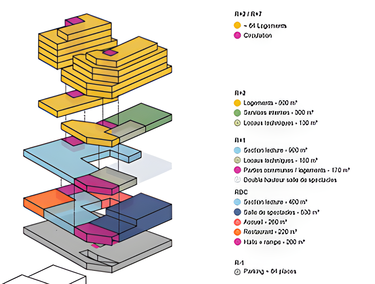 Le projet porte sur la construction d’un immeuble mixte en R+7 comprenant 64 logements locatifs, une médiathèque municipale en socle et un niveau de stationnement en infrastructure. L’opération s’inscrit dans une recomposition urbaine majeure visant à renforcer l’attractivité et les usages du quartier.