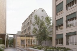 Contexte urbain : le bâtiment se situe dans une petite rue à sens unique, à 800m du palais de l’Elysée au centre-ville de Paris, le chantier a été réalisé avec des contraintes urbaines.